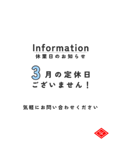 さて、3月の定休日のお知らせです。